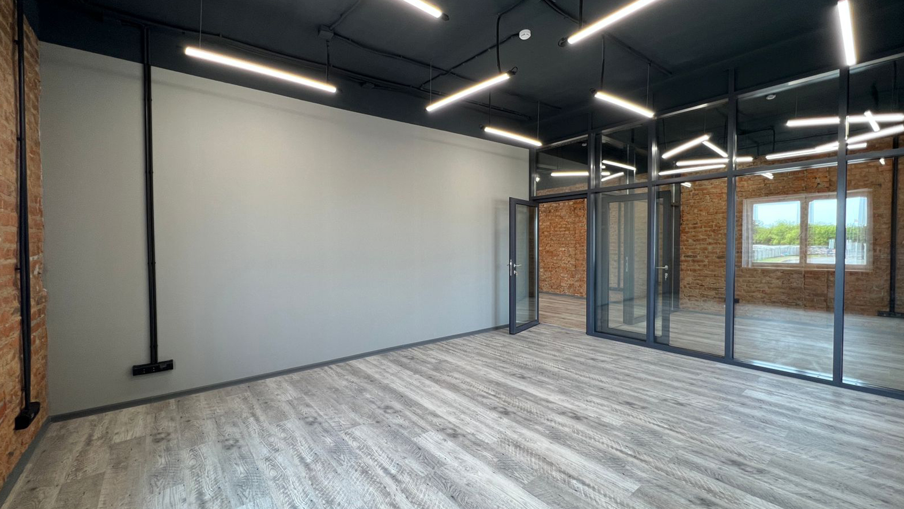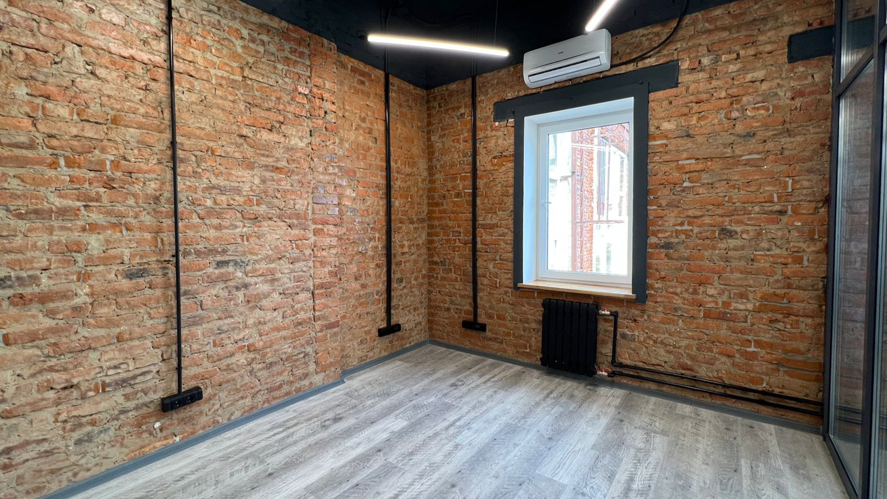 Ремонт выполнен в стиле "Loft" с применением современных отделочных материалов. Перепланировка помещения позволила оборудовать большую светлую переговорную, комфортный Open spece для сотрудников и кабинет руководителя.